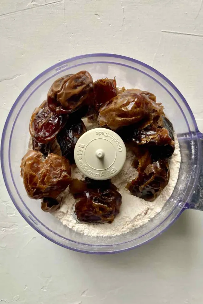 - Process the dates really well. Process the dates and the flour for at least a minute or longer. You want the dates so finely blended that they’re almost seamlessly incorporated into the flour.