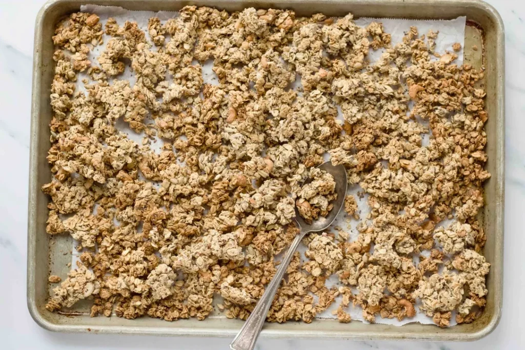 • For bigger clusters, press the granola down firmly before baking and avoid stirring while hot.
